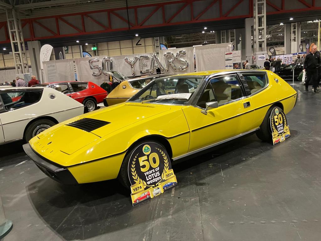 The Lotus Grand Tourers have put on a display of four Type 75s at the Classic Motor Show. It’s apt for the Elite, Eclat and Excel club to focus on the model that celebrates its 50th anniversary this year. It’s one of several Lotus clubs among the 3000 cars that were on show.
