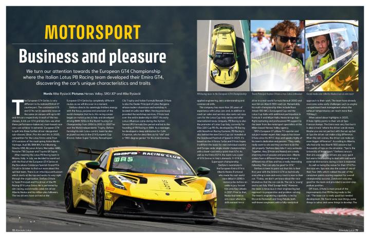 Having first encountered PB Racing in Italy earlier in the season, Mike Rysiecki joined the Italian team in Barcelona to meet the team and its drivers for the final round. The team name means ‘Pleasure and Business’ and they certainly seem to mix fun with serious competitive intent. The full story is in Issue 48 of Absolute Lotus.